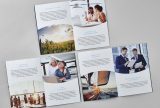 In addition to the desktop notepads, we also designed a general informational catalog for the client. During its layout design, we utilized the flowing shield or sail motif as an organizing principle.