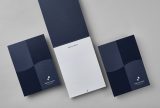 For the folder design, we utilized premium papers and bespoke production techniques. This approach allowed the flowing shield or sail motif to be accentuated more effectively.